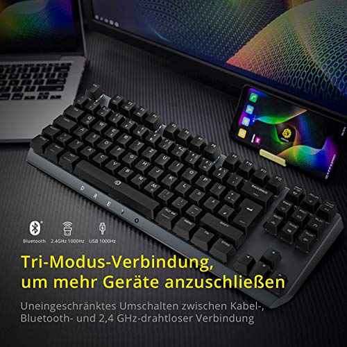 Conectividad triple: Permite el control de tres dispositivos a través de un cable USB, inalámbrico 2.4G y Bluetooth 4.0 al mismo tiempo y también es compatible con Windows / MacOS / iOS / Android / Linux / Unix